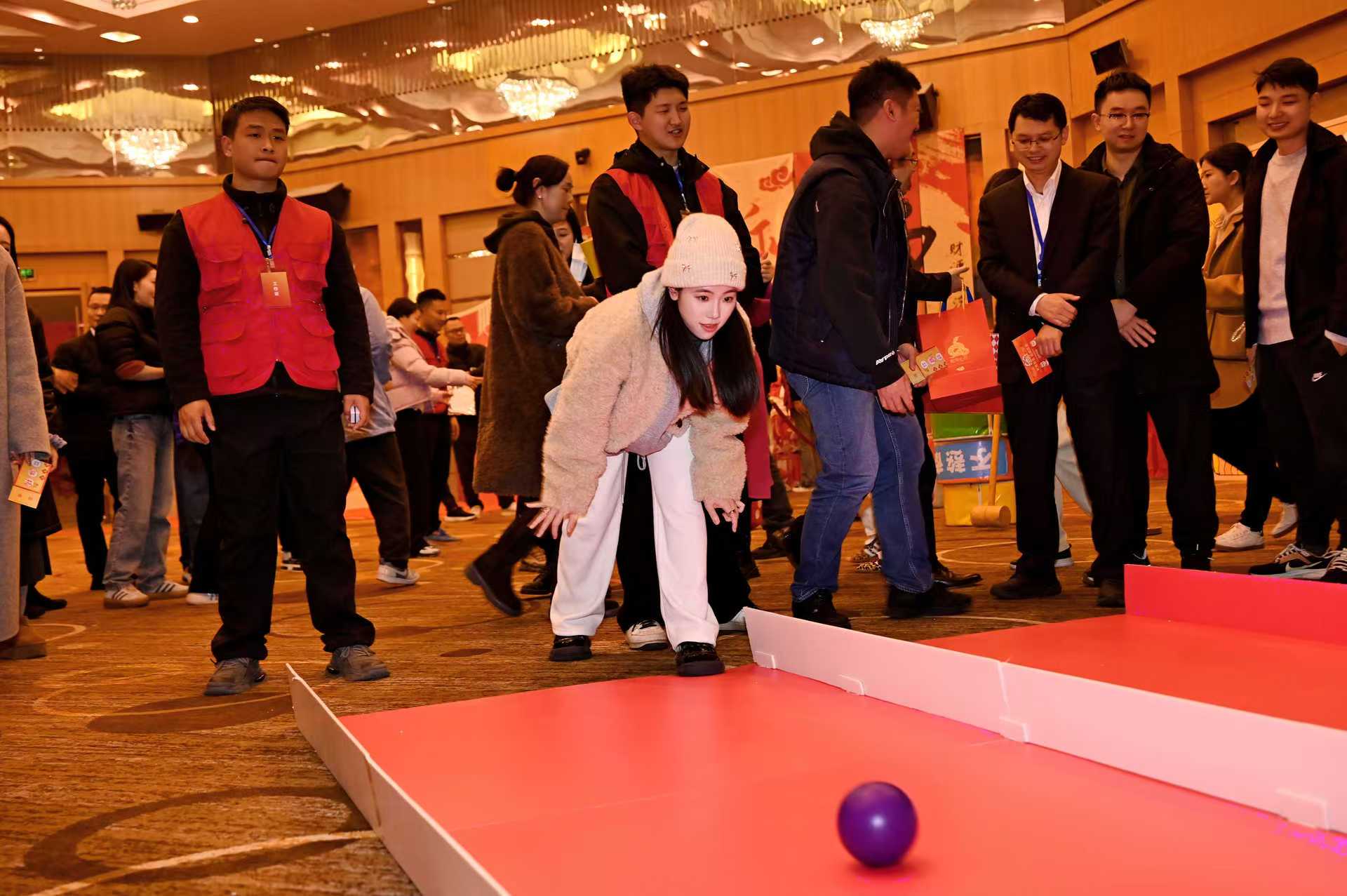 Ò»ÆðÏòÇ°Çø£¬Ö°¹¤ÃÇÂÖÁ÷ÉÏÕó£¬ÓÃÁ¦ÖÀ³ö±£ÁäÇò£¬ÌåÑéÔ˶¯µÄÐËȤÓ뼤Ç飻´¸×ß°ÃÄÕÇø£¬Ö°¹¤ÃÇͨ¹ýÇû÷¡°°ÃÄÕȦ¡±£¬ÊÍ·ÅѹÁ¦£¬ÏíÊÜÖÇ»ÛÓë¼¼ÇɵÄÅöײ £»ÉßÎèдºÇø£¬²ÎÈüÕ߯ÁÏ¢Äý˼£¬Óþ¡È«Á¦Íƶ¯Ð¡Çò£¬¿´ËüÔÚÈüµÀÉÏòêÑÑ£»Æ´³öδÀ´Çø£¬Ö»¼ûÿλְ¹¤Ñ¡ÊÖ±§×Ųî±ðÑÕÉ«ºÍÐÎ×´µÄ¡°·½¿é¡±£¬¹¹½¨Í¼°¸²¢Ñ¸ËÙÍê³ÉÆ´×°¡£