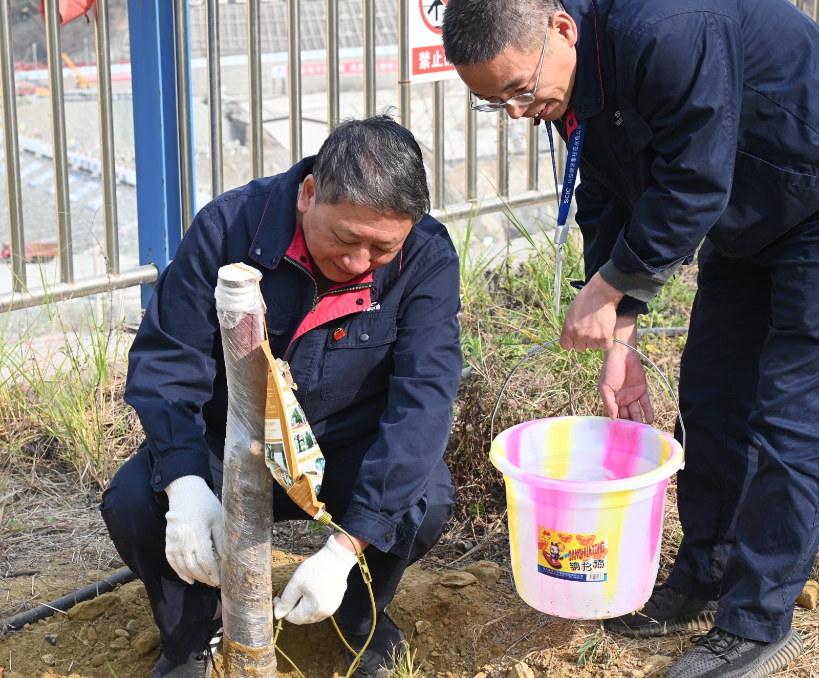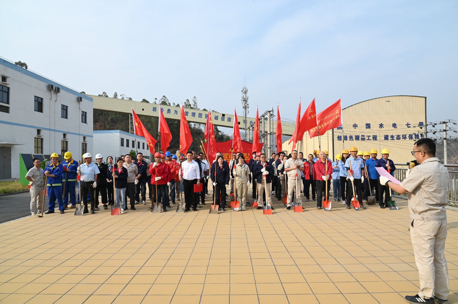 3月12日上午,在第45个植树节之际,攀水电公司为贯彻落实党的二十大精神和习近一生态文明头脑、践行“绿水青山就是金山银山”的理念,公司党总支与金河村党委在银江水电站“七色阳光大党建”宣传阵地开展了党建共建植树活动。攀水电机关支部全体党员、工会小组会员,各联建支部党员,金河村党委党员代表共计50余人加入。活动由公司党总支副书记、董事会秘书、工会主席邓勇主持。