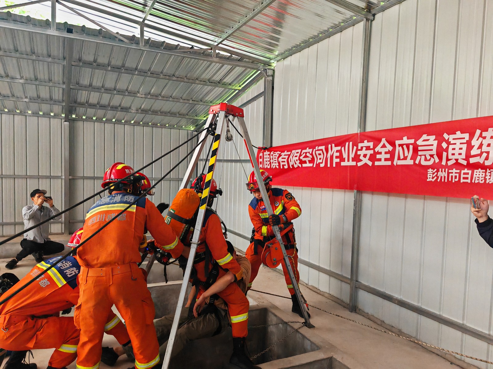 ±¾´ÎÑÝÁ·ÔÚÅíÖÝÊа×¹¾Æ³§¾ÙÐУ¬ÑÝÁ·Ç°µÄרÏîÅàѵÖУ¬ÓÉÇ徲ר¼Ò¶Ô²ÎÑÝÖ°Ô±ÏÖ³¡ÆÕ¼°ÁËÓÐÏÞ¿Õ¼ä×÷ÒµÃæÁÙµÄΣº¦ÒòËØ¡¢ÓÐÏÞ¿Õ¼ä×÷ÒµµÄÊÂÇéÒªÇóµÈרҵ֪ʶ£¬×ÅÖØÇ¿µ÷ÁË×÷ҵǰ±ØÐèÉóÅú£¬×÷ҵʱÑÏ¿áÖ´ÐС°ÏÈ͸·ç¡¢ÔÙ¼ì²â¡¢ºó×÷Òµ¡±Á÷³Ì£¬²¢ÅäºÏÏÖ³¡ÑÝʾȫÉíʽÇå¾²´ø¡¢ºôÎüÆ÷µÈÓÐÏÞ¿Õ¼äÓ¦ÇÀ¾ÈÔ®ÉèÊ©ºÍ×°±¸µÄʹÓÃÒªÁ죬×Ðϸ½â˵Á˽ôÇÀ¾ÈÔ®·½ÃæµÄÊÊÓÃ֪ʶ¡£