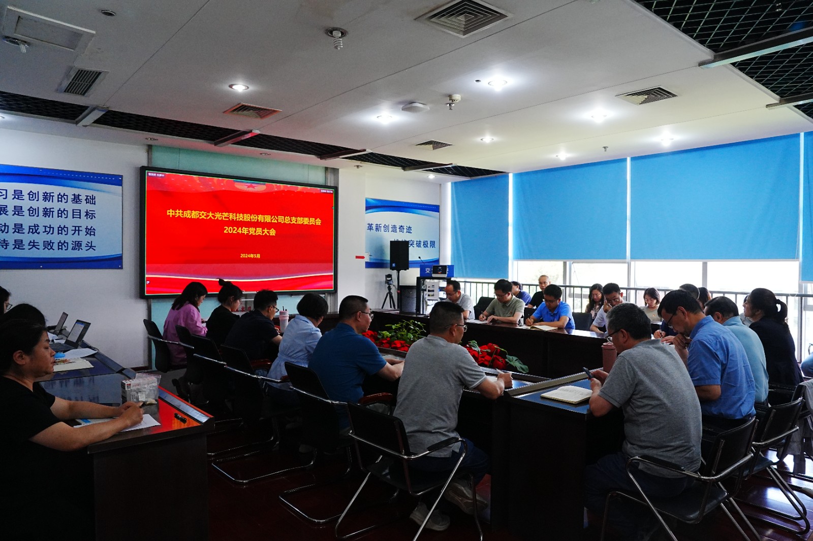 上一届交大光线党总支委员会任期届满,为深入落实周全从严治党要求,一连增强下层党组织战斗堡垒作用,凭证《中国共产党章程》《中国共产党下层组织选举事情条例》和威尼斯wns885566能源党委要求,交大光线党总支于2024年5月30日下昼召开党员大会举行换届选举,上一届党总支书记刘成辉主持聚会并上党课。