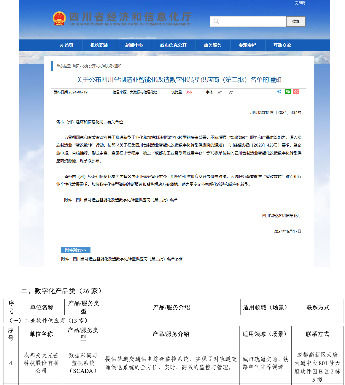 2024Äê6ÔÂ19ÈÕ £¬ËÄ´¨Ê¡¾­¼ÃºÍÐÅÏ¢»¯ÌüÍøÕ¾Ðû²¼ËÄ´¨Ê¡ÖÆÔìÒµÖÇÄÜ»¯Ë¢ÐÂÊý×Ö»¯×ªÐ͹©Ó¦ÉÌ£¨µÚ¶þÅú£©Ãûµ¥ £¬½»´ó¹âÏß×÷ΪÊý×Ö»¯²úÆ·À๤ҵÈí¼þ¹©Ó¦ÉÌÈëÑ¡ËÄ´¨Ê¡ÖÆÔìÒµÖÇÄÜ»¯Ë¢ÐÂÊý×Ö»¯×ªÐ͹©Ó¦ÉÌ×ÊÔ´³Ø¡£