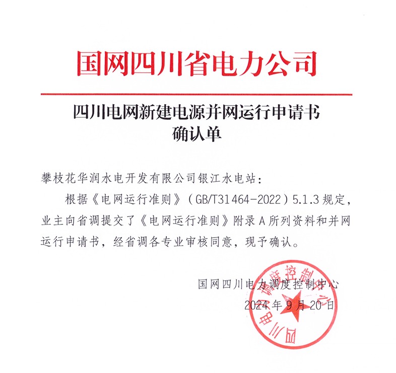 9ÔÂ20ÈÕ£¬ÔÚ¹úÍøËÄ´¨Ê¡µçÁ¦¹«Ë¾ºÍÍþÄá˹wns885566ÄÜÔ´µÄÖ¸µ¼×ÊÖúÏ£¬¾ÓÉÆð¾¢¶Ô½Ó¡¢¶à·½Ðµ÷£¬ÅÊË®µç¹«Ë¾ÀÖ³ÉÈ¡µÃÒø½Ë®µçվн¨µçÔ´²¢ÍøÔËÐÐÉêÇëÊéÈ·Èϵ¥£¬±ê¼Ç×ÅÒø½Ë®µçÕ¾¾ß±¸²¢ÍøÊÖÐø´òµãµÄ×ʸñÌõ¼þ¡£