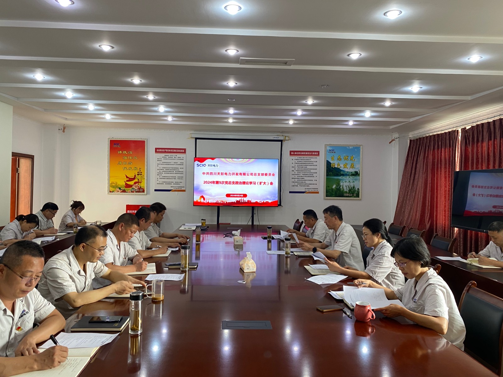 ¿ËÈÕ£¬ÌìÅíµçÁ¦µ³×ÜÖ§ÕÙ¿ª2024ÄêµÚ9´Îµ³×ÜÖ§ÕþÖÎÀíÂÛѧϰ£¨À©´ó£©¾Û»á£¬¼¯ÖÐѧϰʡίʮ¶þ½ìÁù´ÎÈ«»á¾«Éñ£¬Ñо¿¹«Ë¾¹á³¹ÂäÖ´Ðж¯¡£¹«Ë¾µ³×ÜÖ§Êé¼Ç¡¢Ö´Ðж­Ê¡¢×Ü˾ÀíÁõºì±øÖ÷³Ö£¬Ïòµ¼°à×Ó³ÉÔ±¡¢µ³Ô±¡¢¸É²¿¡¢Òªº¦¸ÚλְԱ¼ÓÈëѧϰ¡£
