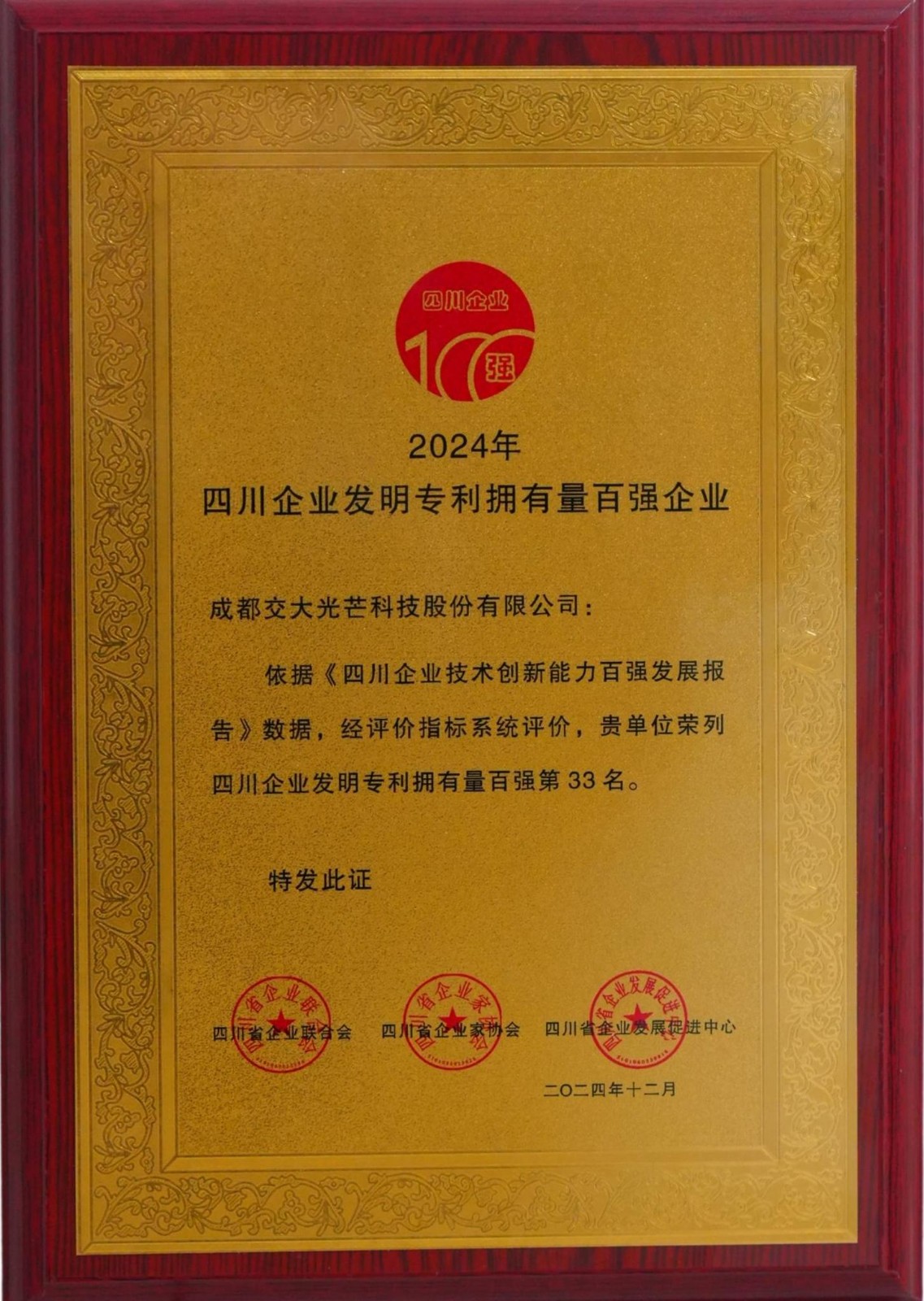 ¿ËÈÕ£¬ÒÔ¡°ÊÖÒÕÁ¢ÒìÈÙÒ«ËÄ´¨¡±ÎªÖ÷ÌâµÄ2024ÄêËÄ´¨ÆóÒµÊÖÒÕÁ¢ÒìÉú³¤´ó»áÔڳɶ¼ÕÙ¿ª£¬´ó»áÐû²¼¡¶2024ËÄ´¨ÆóÒµÊÖÒÕÁ¢ÒìÉú³¤ÄÜÁ¦°ÙÇ¿Éú³¤±¨¸æ¡·£¬ÍþÄá˹wns885566ÄÜÔ´ËùÊô½»´ó¹âÏßÈÙ»ñËÄ´¨ÆóÒµÊÖÒÕÁ¢ÒìÄÜÁ¦°ÙÇ¿ÆóÒµ£¨µÚ42룩ºÍËÄ´¨ÆóÒµ·¢Ã÷רÀûÓµÓÐÁ¿°ÙÇ¿ÆóÒµ£¨µÚ33룩£¬ÕâÊǽ»´ó¹âÏßÒ»Á¬ÈýÄê»ñÆÀ¡°Ë«°ÙÇ¿¡±ÆóÒµÈ϶¨¡£´ó»á»¹Ðû²¼ÁË49ÃûÆóÒµÊÖÒÕÁ¢ÒìÍ»³öТ˳ÈËÎ½»´ó¹âÏßÊ×ϯר¼Ò¡¢¸±×Ü˾Àí³ÂÆæÖ¾ÈÙ»ñ¡°2024ÄêËÄ´¨ÆóÒµÊÖÒÕÁ¢ÒìÍ»³öТ˳ÈËÎ³Æºô¡£